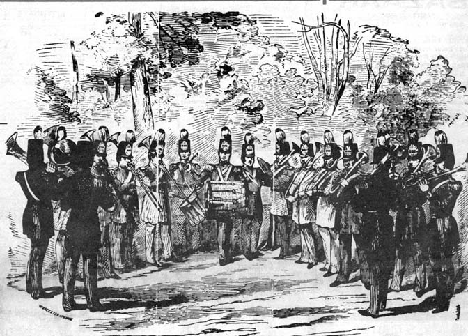 This woodcut of the band was published in Gleason’s Pictorial Drawing Room in the 1850s. The band was led by Lyme, N.H., native D.C. Hall from 1853 to the 1880s.